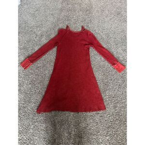 able Shoulder Cutout Raw Hem Thermal Dress Red Bohemian S Distressed Flowy