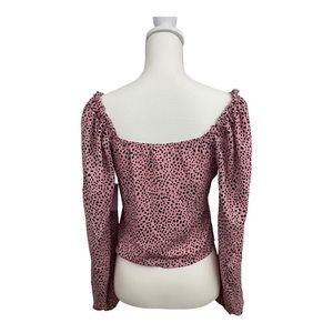 abound Balloon Sleeve Ruffle Collar Top, pink polka dot crop NWT