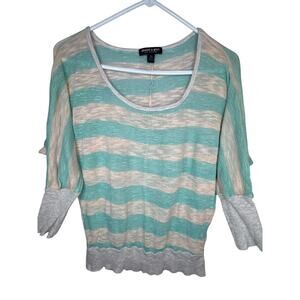about a girl Los Angeles Top Women’s Size XL Gray & Turquoise Striped