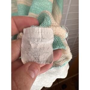 Add a pop of color and comfort to your closet with this “About a Girl Los Angeles” women’s top, size XL. This stylish piece features a small-knit construction in gray and turquoise stripes, giving it a fresh, laid-back vibe. Designed with dolman sleeves, cinched gray cuffs on the sleeves and bottom hem, and a wide neck opening for a relaxed yet flattering fit. A perfect casual-chic staple for your everyday looks!