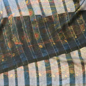 Translucent scarf with muted colors, silver threading ((60" X 14" rectangle)