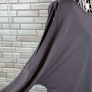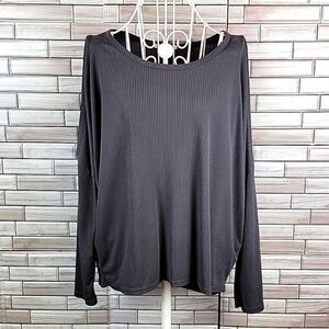 A modal polyester blend soft silky midweight fabric make up this top by acemi. A sleek design with long batwing sleeves, a round neck and a straight hemline. Great pre-owned condition