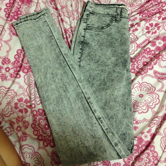 Cute grey high waisted jeans. Acid washed. Super comfortable and fashionable :)