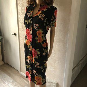 adDRESS MAGGY, Bright Vivid florals on black acetate, size 10,