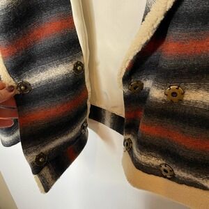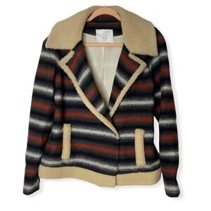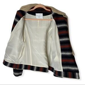 adam lippes shearling collar wool blend double breasted stripes jacket