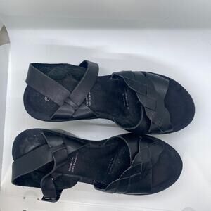 adiPRENE by Adidas Black Sandals Wedge Strappy Leather Women sz 8