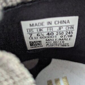 Features a sleek, sock-like Primeknit upper with rubberized Three Prints insignia, a sculpted heel clip and a full-length crisp white BOOST midsole. The animal print colorway features an audacious metallic gold heel clip.