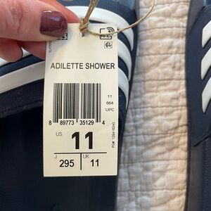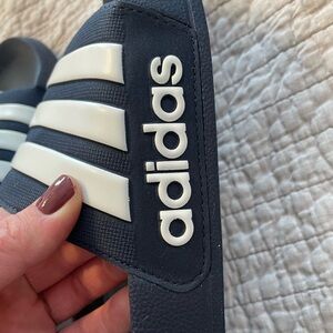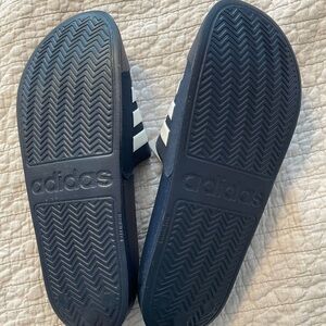 adidas ADILETTE Slides Sandals Mens White Navy Blue Flip Flops Size 11 Shower
