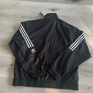 An adidas track jacket is the ultimate versatile outfit maker. This pick for juniors is perfect for all-day wear. It's got zip pockets to store your stuff, plus a stand-up collar for extra edge. Iconic 3-Stripes line the sleeves, grounding your look in athletic appeal. Made with 100% recycled materials, this product represents just one of our solutions to help end plastic waste.