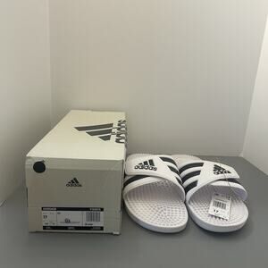 adidas Adissage Slides Sandal, White/Black/White, 17 US Men