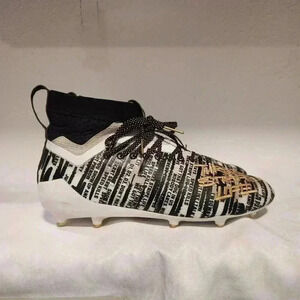Men's cleats size 13, adidas Adizero SPT 753001. These cleats are black and white and have "Three Stripe Life" stitched on the outside in gold, and the adidas logo on the inside in gold. Used but in good condition. Art D96811