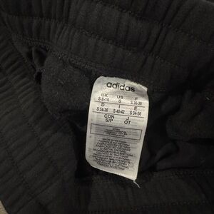 Comfortable black joggers. Features white side stripes. Elastic waistband for easy fit. Iconic adidas logo on leg.