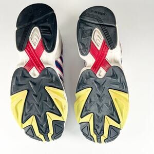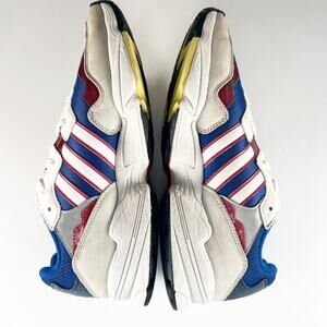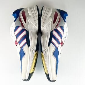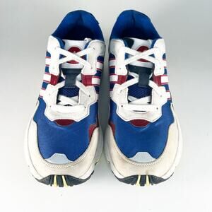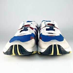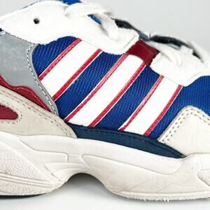 Stylish adidas sneakers. Blue and white design. Red accents. Comfortable fit.