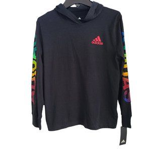 adidas Boys' Long Sleeve Multicolor Warp Logo Hooded Tee