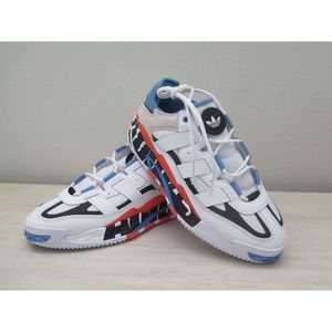 adidas FX7644 Men's Sz 8 White/Solar Red/Hazy Blue Originals NiteBall Sneakers