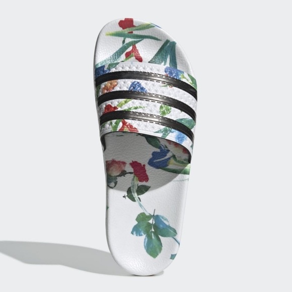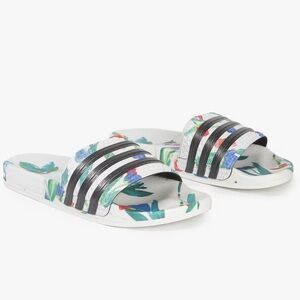 adidas Floral Slide Sandals - White and Black