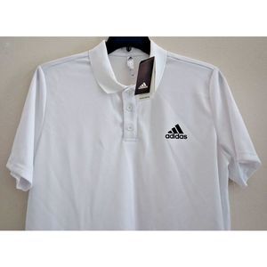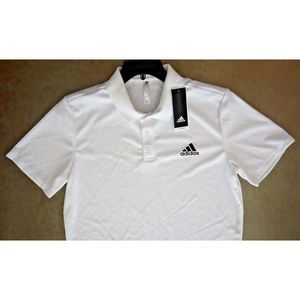 adidas GL0484 Men's Sz Large White/Black Designed to Move 3-Stripes Polo Shirt