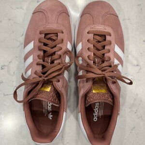 Stacked three times higher than classic Gazelles, this sneaker rocks buttery soft suede uppers with signature serrated 3-Stripes detailing and a platform outsole for added height. NEVER WORN. Pristine condition.