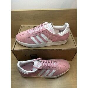 The adidas Gazelle Pink Glow Cloud White HQ4412 is a stylish women's sneaker in a size US 9. Featuring a classic lace-up closure, low top shoe shaft style, and a rubber outsole, this shoe offers comfort and a trendy look. With a pink color and cloud white accents, this athletic shoe is a part of the adidas Gazelle product line. Made of suede upper material and blended fabric lining, this 2023 release is perfect for those looking for a comfortable and fashionable sneaker for everyday wear.
