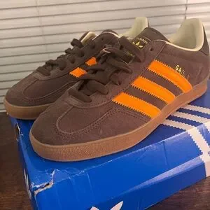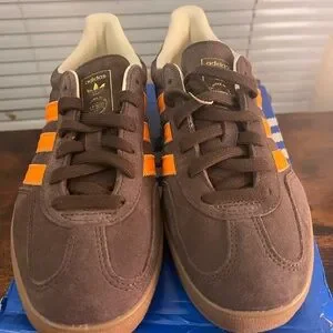 adidas Gazelle Suede Sneakers - Brown with Orange Stripes size 8.5 W