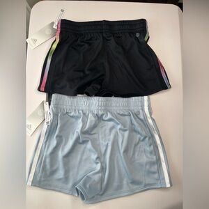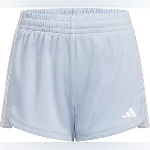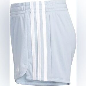 adidas Girls' 3S Pacer Mesh Shorts-Light Blue and Black