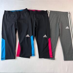 adidas Girls size Medium 10 Athletic mid-length pants Black Gray pink Tricot