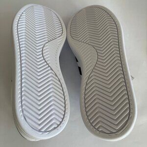 Iconic adidas Grand Court sneakers in cloud white / core black / core black.