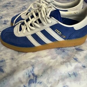 adidas Handball Spezial 75th Anniversary Pack Collegiate Royal size 5.5 M / 7.5 w . I’m usually a size 8-8.5 and they’re fit a bit snug. Only used once .