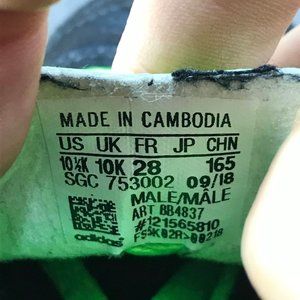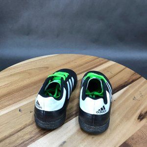 adidas sneakers for kids. Black design with neon green laces. Classic white stripes on sides.