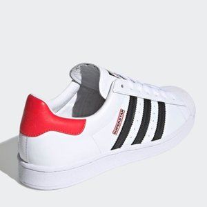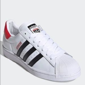 About the shoes: Some say the golden age of hip hop began in 1983 in Hollis, Queens. Rev. Run, DMC and Jam Master Jay took hold of the culture, changing the sound and revolutionizing the look. And nobody wore a pair of shell toes like they did. In honor of the adidas Superstar sneakers' 50th anniversary, these adidas Superstar shoes are inspired by the legacy of the songs we never got out of our heads. They get special details like adidas branded lace tips and a Run-DMC sockliner and tongue label. No lid. M6/W7