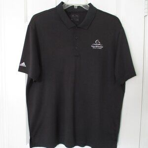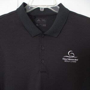 adidas Mens S/S "Half Moon Bay Golf Links (CA) Black Polo Shirt. Size XL. Armpit-to-armpit 25.5", Length 29.5". 100% Polyester in Black. Previously owned but barely if ever used, zero sign of wear, stain or defect.