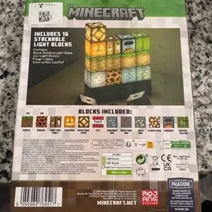 Stackable light blocks with Minecraft theme. Includes 16 blocks with various designs.