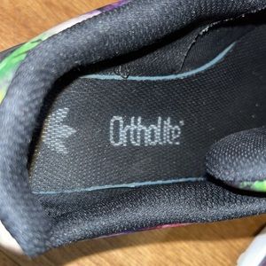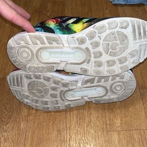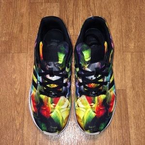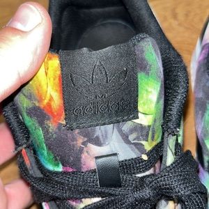 Vibrant adidas athletic shoes. Multicolor design with black accents. Comfortable and stylish.