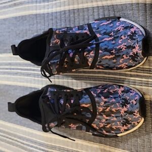 NWOT adidas NMD R1 shoes, brand new, never worn. Colors are black, white, pink, and blue. Kids size 6 or women's 7 1/2. No tags, no box.
