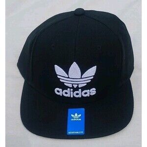 The adidas Originals Men's Trefoil Chain Flatbrim Snapback Cap in black and white is a classic and stylish accessory for any man. Its snapback style and adjustable feature make it suitable for both travel and casual occasions. The iconic adidas Originals branding and timeless design of the solid black and white colorway add to its versatility and appeal. Perfect for those who appreciate quality and style in their headwear choices.