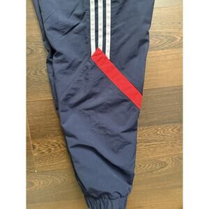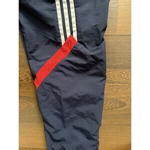 The adidas Originals Sportive Retro Navy Track Pants in Men's size L are perfect for both activewear and workwear occasions. These track pants feature a retro sports theme with a navy color and the iconic adidas brand. With features such as pockets and a comfortable regular fit, these pants are suitable for activities like dance and basketball. The EJ0952 model offers a stylish and functional addition to any man's wardrobe, blending classic retro design with modern performance.