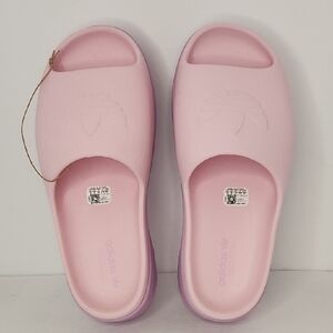 Comfortable and stylish Adidas platform mules with a modern design. Perfect for casual wear.