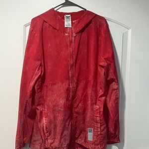 Stylish adidas performance jacket. Vibrant red color. Perfect for active wear. Distressed look a great lightweight jacket.