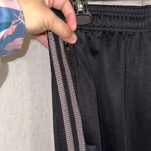 adidas S Performance Athletic Three Stripe Black Pink Ankle Zip Track Pants