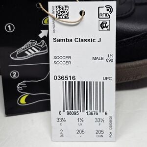 adidas Samba J Classic Core 036516 Black White Toddler Little Kid Size 2