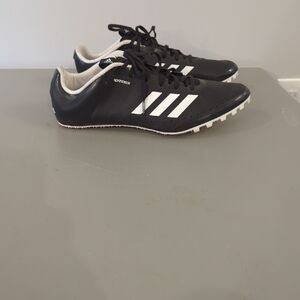 Stylish Adidas sprint shoes. Sleek black design with white stripes. Perfect for track and field.