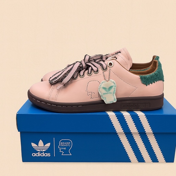 Brand new, never worn adidas Stan Smith x Brain Dead collaboration in the coveted Vapor Pink colorway. This limited collab features premium leather, textured details, and signature Brain Dead graphics