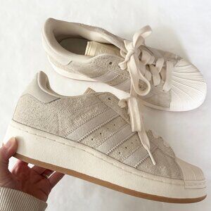 The Superstar XLG are low-top sneakers from Adidas. They feature lace-up fastening and signature three stripes.