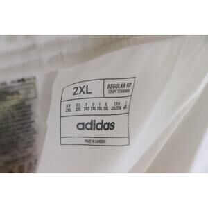 The adidas Tiro 24 White Black Soccer Training Pants in Men's Size XXLarge are versatile activewear pants suitable for a variety of sports activities and training sessions. Made from a blended fabric of polyester and cotton, these pants feature a solid white color with a black stripe, a drawstring closure, and compression areas at the waist and legs for added support during intense workouts. The track pants style includes pockets for convenience and a lightweight design for comfort, making them ideal for activities such as soccer, running, and cross-training. Perfect for all seasons, these adidas Tiro pants combine style and functionality for the modern athlete.