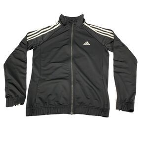 adidas Track Jacket Womens Medium Black Polyester Logo Long Sleeve Full Zipper.