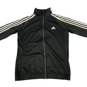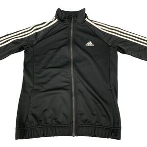 adidas Track Jacket Womens Medium Black Polyester Logo Long Sleeve Full Zipper