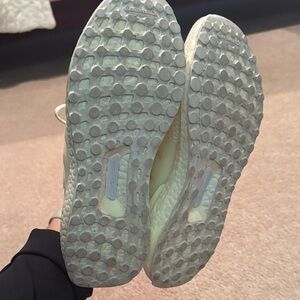 Stylish adidas Ultra Boost shoes. Cream white color. Comfortable and breathable design. Perfect for athletic activities.