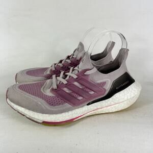 adidas Ultraboost 21 Running Shoes Women 8.5 Gray Purple Lace-Up Athletic Sneakers