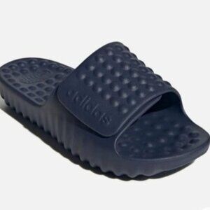 adidas Adissage Flux slides, NWT slides, navy adidas slides, unisex sandals, comfort slides, recovery shoes, shower slides, EVA molded sandal, textured footbed, water-friendly shoes, gym slides, post-workout footwear, athletic slides, minimalist design, sporty sandals, men’s 6 women’s 7, dark blue slides