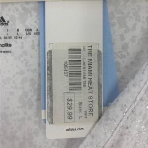 Casual white V-neck tee with Miami Heat graphic. Soft and breathable fabric. Ideal for sports fans.